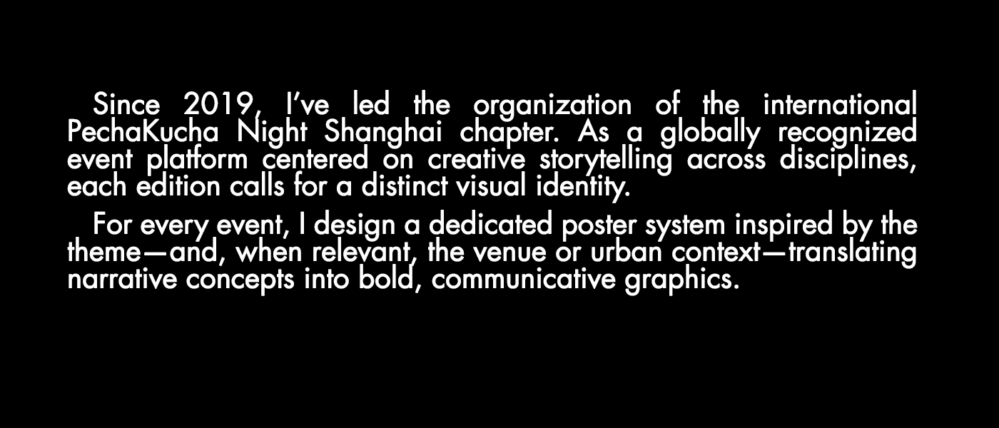 Collection of Posters designed over the last 5 years working as the Creative Director of PechaKucha Night Shanghai.